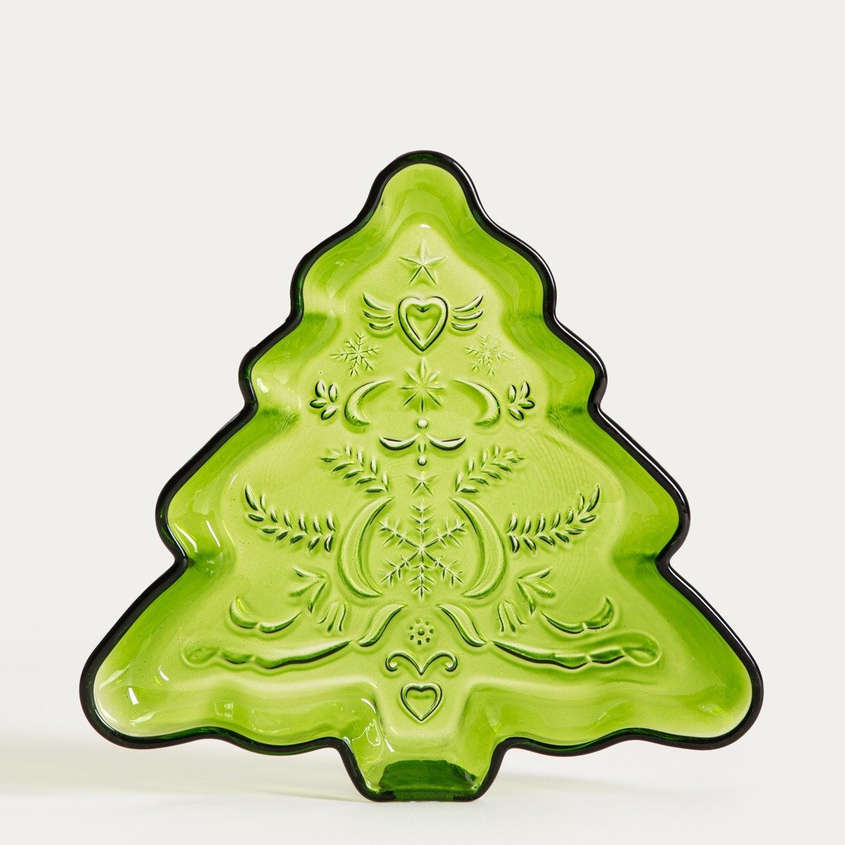 Servírovací mísa - Tvar vánočního stromku - Zelená barva - Průhledné sklo - Skleněná servírovací mísa ve tvaru vánočního stromku, zelenáServírovací mísa má půvabný tvar vánočního stromku. Je vyrobena z průhledného skla v zelené barvě, která podtrhuje její půvabný a slavnostní charakter. Sladké i...