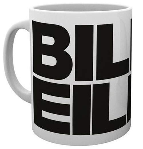 Bílý keramický hrnek známé americké zpěvačky a skladatelky Billie Eilish s logem.