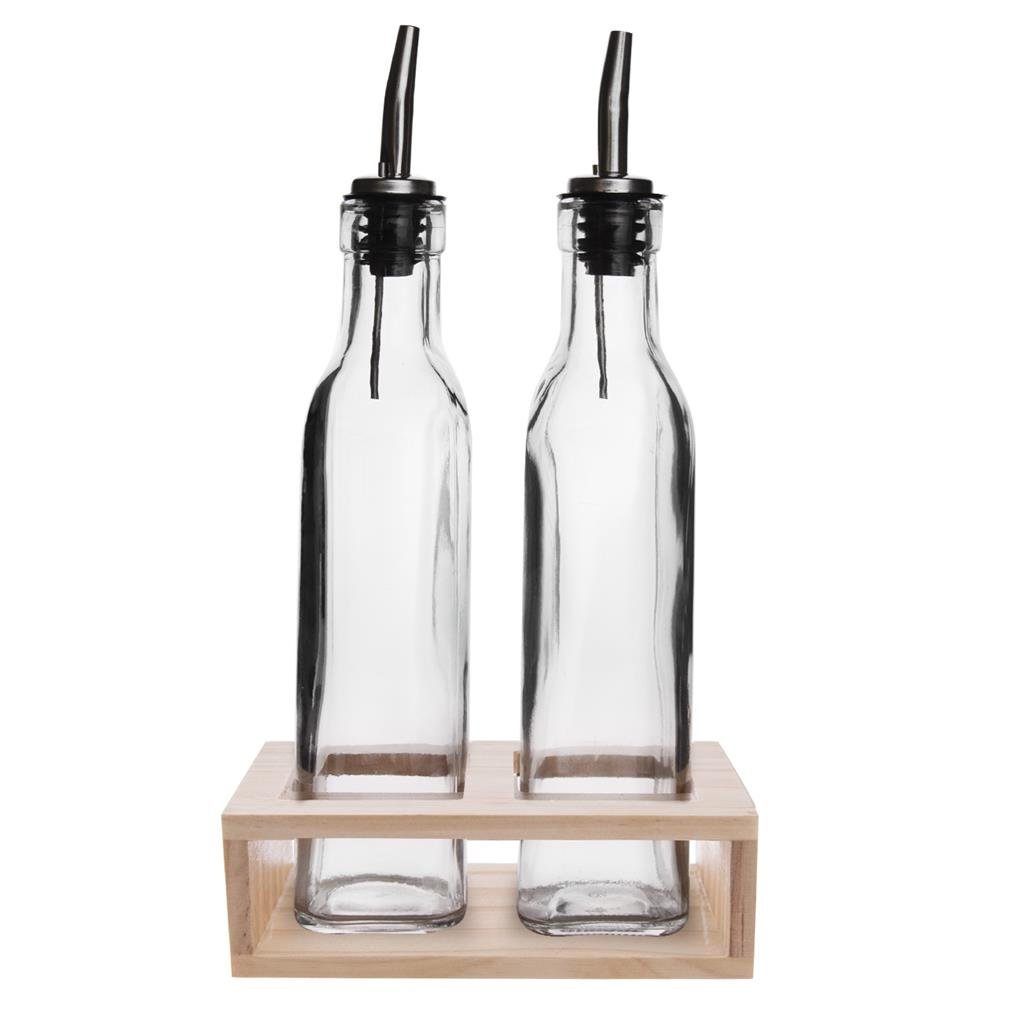 Dřevěný stojan s dochucovací soupravou Vám umožní mít olej a ocet vždy po ruce při domácím i venkovním stolování. Můžete ho umístit všude tam, kde je právě zapotřebí. Materiál: stojan – dřevo, láhve na olej a ocet – sklo, kov, plast. Rozměry: 14x8x27 cm, nádoba na olej/ocet objem 0,3 l, 5x5 cm,... przeczytaj całość