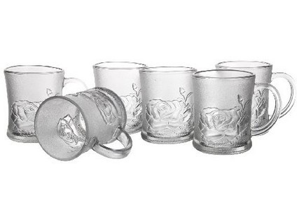 Zestaw ROSALIA zawiera 6 matowych szklanych kubków o pojemności 250 ml z motywem róży.