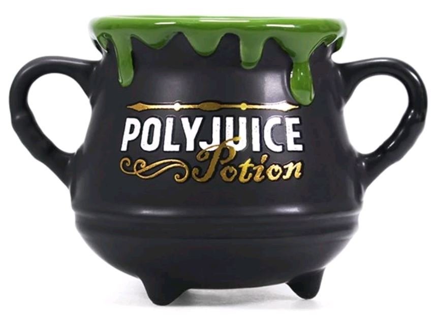 Oficiální hrnek a doplňkové zboží z katalogu produktů se znakem, fotografiemi a grafikou ságy o kouzelníkovi jménem Harry Potter.Zboží je legálně licencováno a prodáváno se souhlasem vlastníků licenčních práv.Roztomilý keramický černý hrnek s grafikou filmů o Harrym Potterovi - Polyuice...