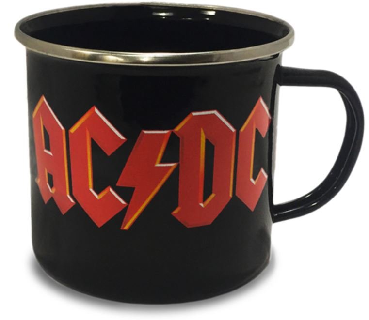 Smaltovaný hrnek isnpirovaný logem hudební skupiny AC/DC.