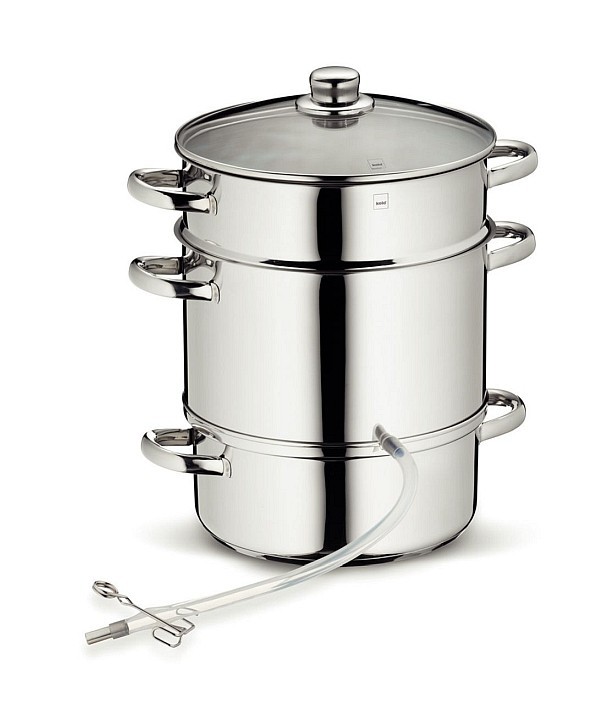 Hrnec na odšťavňování, pro přípravu sirupů i džemů - odšťavňovací hrnec- materiál: nerezová ocel 18/10 - spodní hrnec se sedvičovým dnem- výška: 36 cm - průměr: 25 cm - vhodné na všechny druhy sporáků včetně indukce-- Luxusní hrnce a pánve německé značky KELA jsou vyrobeny z leštěné nerezové...