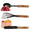 materiál: nylon / PP plastžáruvzdorné do 180 °C praktická nožka na zadní části náčiní, můžete jej položit a nezašpiníte si kuchyňskou linkunepoškrábe nádobírukojeti v dřevěném designusnadné čištění, vhodné do myčkysada 9 ks obsahuje:naběračka na polévku 32 cmpěnovačka 34 cmděrovaná lžíce 31...