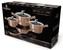 - doménou této sady je 3vrstvý povrch s mramorovým designem charakteristický svou dokonalou nepřilnavostí, žádné potraviny se nepřipalují a díky tomu se kastroly i pánve velice snadno čistí