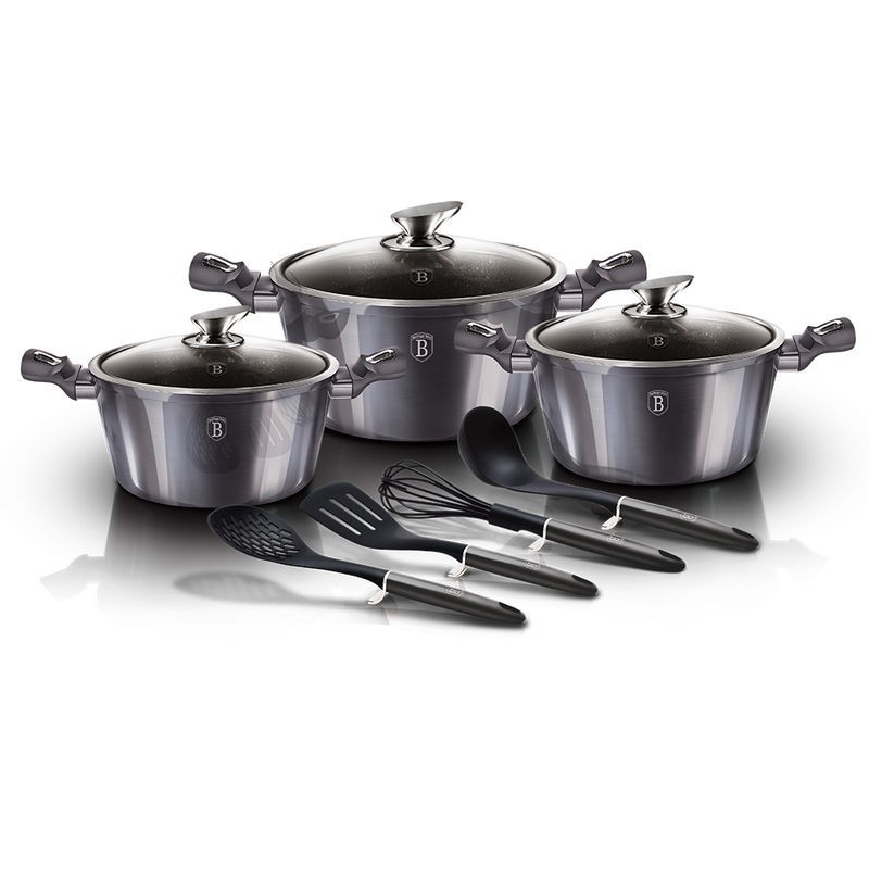 - doménou této sady je 3vrstvý povrch s mramorovým designem charakteristický svou dokonalou nepřilnavostí, žádné potraviny se nepřipalují a díky tomu se kastroly velice snadno čistí