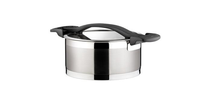 Luxusní kuchyňské nádobí s revolučním systémem regulace páry a cezení. Unikátní sklonerezová poklice se 3 pracovními polohami: 1. ŽÁDNÝ OTVOR PRO PÁRU pro rychlé dosažení varu a ohřívání pokrmů s úsporou energie, 2. MALÝ OTVOR PRO PÁRU pro komfortní vaření bez překypění a cezení nadrobno krájené...