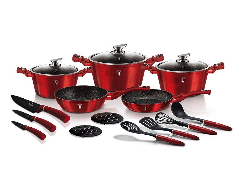 BERLINGERHAUS Sada nádobí s mramorovým povrchem 17 ks Burgundy Metallic Line BH-6162