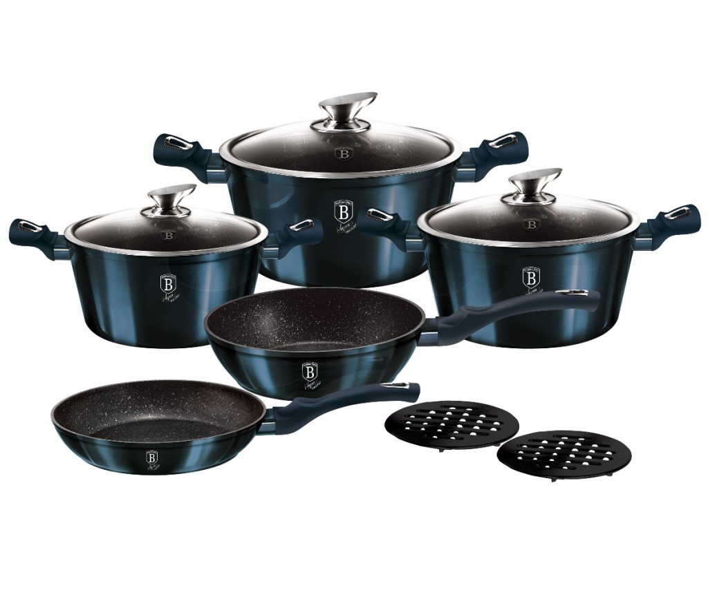 BERLINGERHAUS Sada nádobí s mramorovým povrchem 10 ks Aquamarine Metallic Line BH-1884