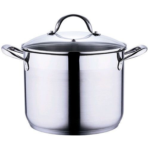 -Indukční nádobí Bergner-materiál: nerezová ocel 18/10, tloušťka 0,6 mm-stříbrná barva-celonerezové držadla-rozměry: průměr 24 x 18,5 cm, objem 7,7 L-sendvičové dno-skleněná poklice przeczytaj całość
