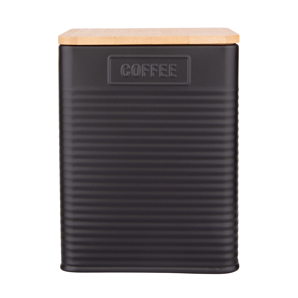 HRANATÁ PLECHOVÁ DÓZA S BAMBUSOVÝM VÍČKEM 11X11X14CM LOFT ČERNÁ COFFEE