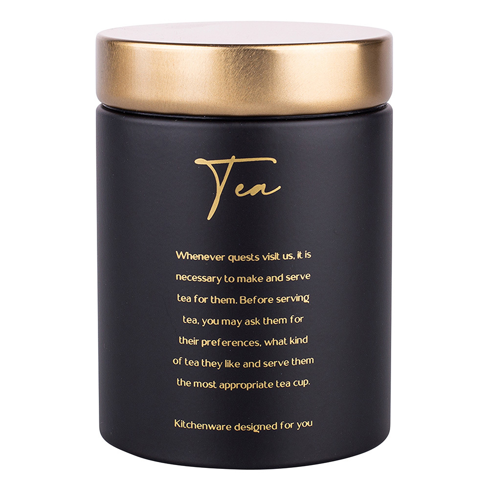 DÓZA SE ZLATÝM VÍČKEM ČERNÁ MATNÁ 11X11X15CM ČAJ