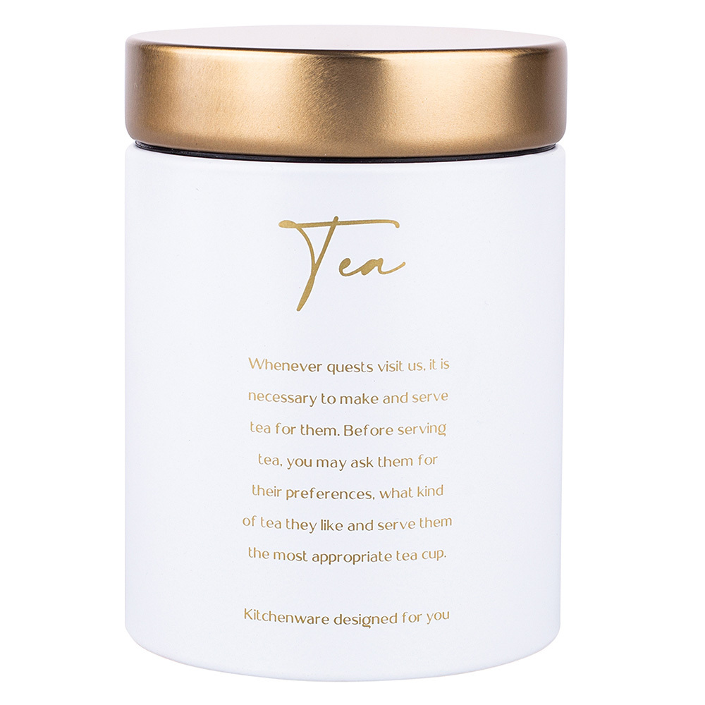 KRUHOVÁ MATNĚ BÍLÁ KRABICE S VÍKEM V ZLATÉM ODSTÍNU 11X11X15CM ČAJ
