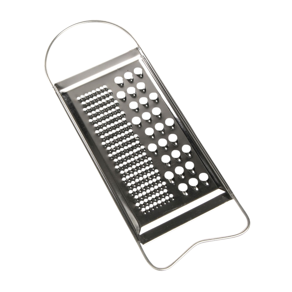 Płaska tarka do warzyw, owoców czy serów z trzema rodzajami oczek - dużymi, małymi oraz płaskim do plasterków. Posiada wygodną rączkę. Łatwa w utrzymaniu czystości i przechowywaniu. Dobry wybór, nawet do malutkich kuchni. przeczytaj całość