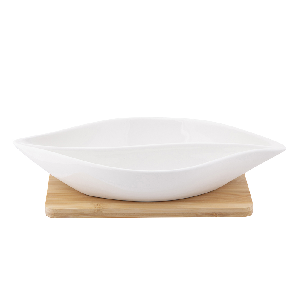 REGULAR PORCELÁNOVÁ DĚLENÁ MISKA 26X14X4CM NA BAMBUSOVÉ PODLOŽCE 19.5X19.5X1CM