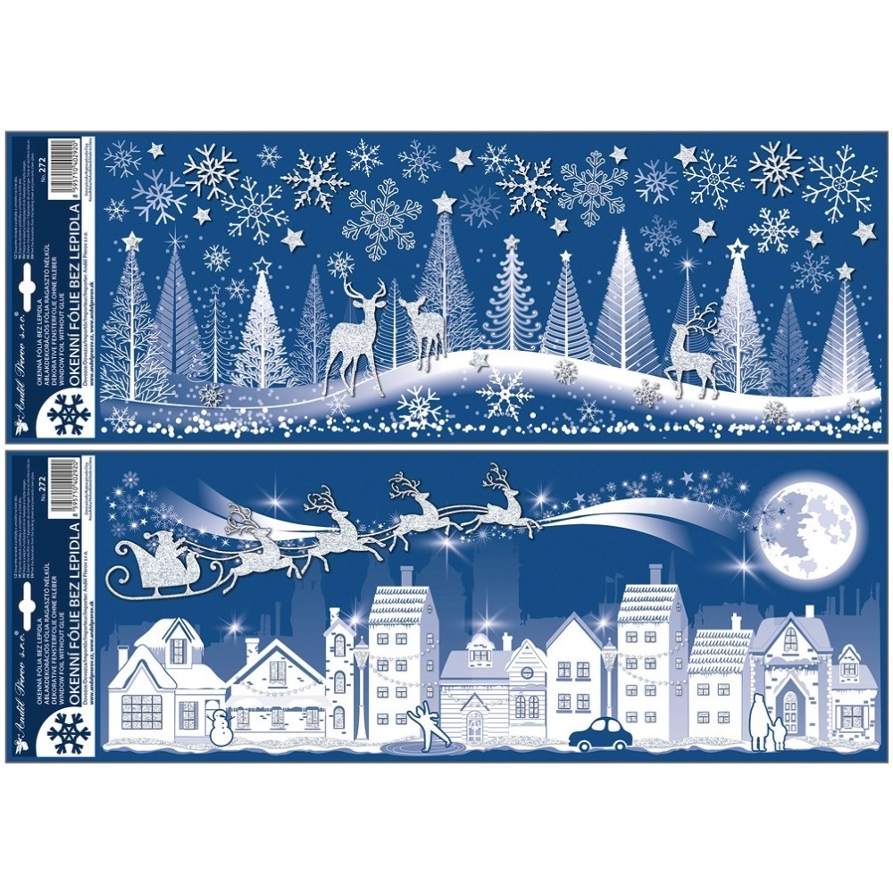 Vánoční okenní fólie s glitry Město a les 21 × 59,5 cm (cena je za 1 arch)