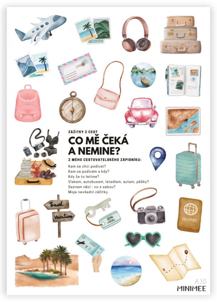 Planowanie wyjazdu nigdy nie było przyjemniejsze. Te wycięte naklejki w stylu akwareli na arkuszu formatu A5 stworzą wyjątkowy nastrój i pomogą Ci czytelnie oznaczyć wszystkie ważne momenty Twoich podróży, niezależnie od tego, czy wybierasz się samochodem, samolotem czy pieszo.