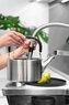 Čajová konvice s píšťalkou:objem: 1,5 l,materiál: nerezová ocel,odolná proti poškrábání, mechanickému a chemickému poškození,3-vrstvé dno o tloušťce 0,3 cm se rychle zahřeje,pevná, sklopná bakelitová rukojeť se při vaření nezahřívá,odnímatelné víko usnadňuje doplňování nádoby vodou,vhodná do... przeczytaj całość