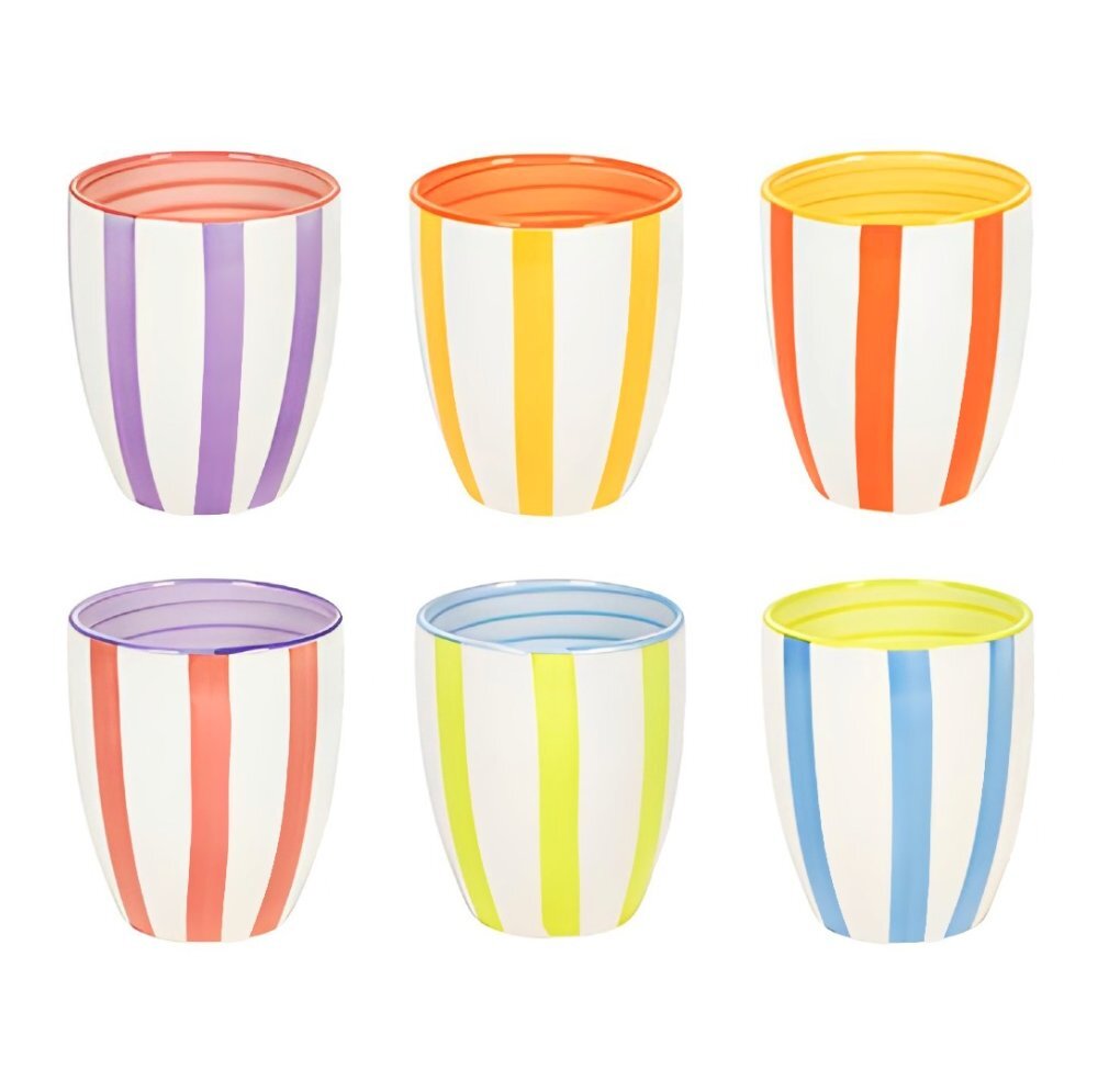 Keramická kávová souprava SUMMER - 6 x šálek na kávu.Tato sada obsahuje šest šálků o objemu 180 ml, všechny v bílém provedení s pastelově barevnými pruhy. Vnitřek šálků je barevně glazovaný. Stylové barvy a jedinečný design této sady dodají každému vašemu kávovému rituálu nádech pohody. Sada je...