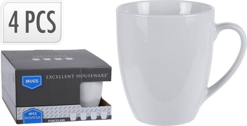 Hrnek porcelánový sada 4 ks bílá 380 ml