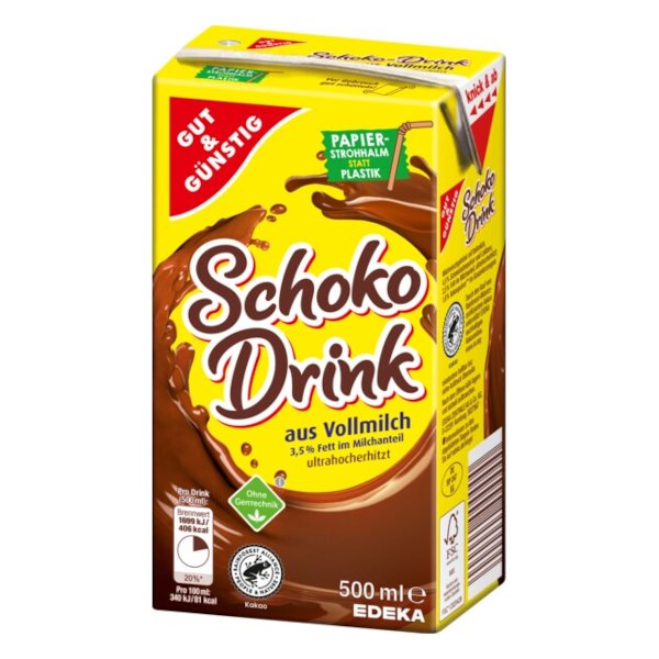 GG Čoko drink z plnotučného mléka 3,5% - 500mlLahodný mléčný nápoj s kakaovou příchutí. Praktická krabička s brčkem - ideální na cesty. Kakao je z udržitelného pěstování - Certifikace Rainforest Alliance. przeczytaj całość