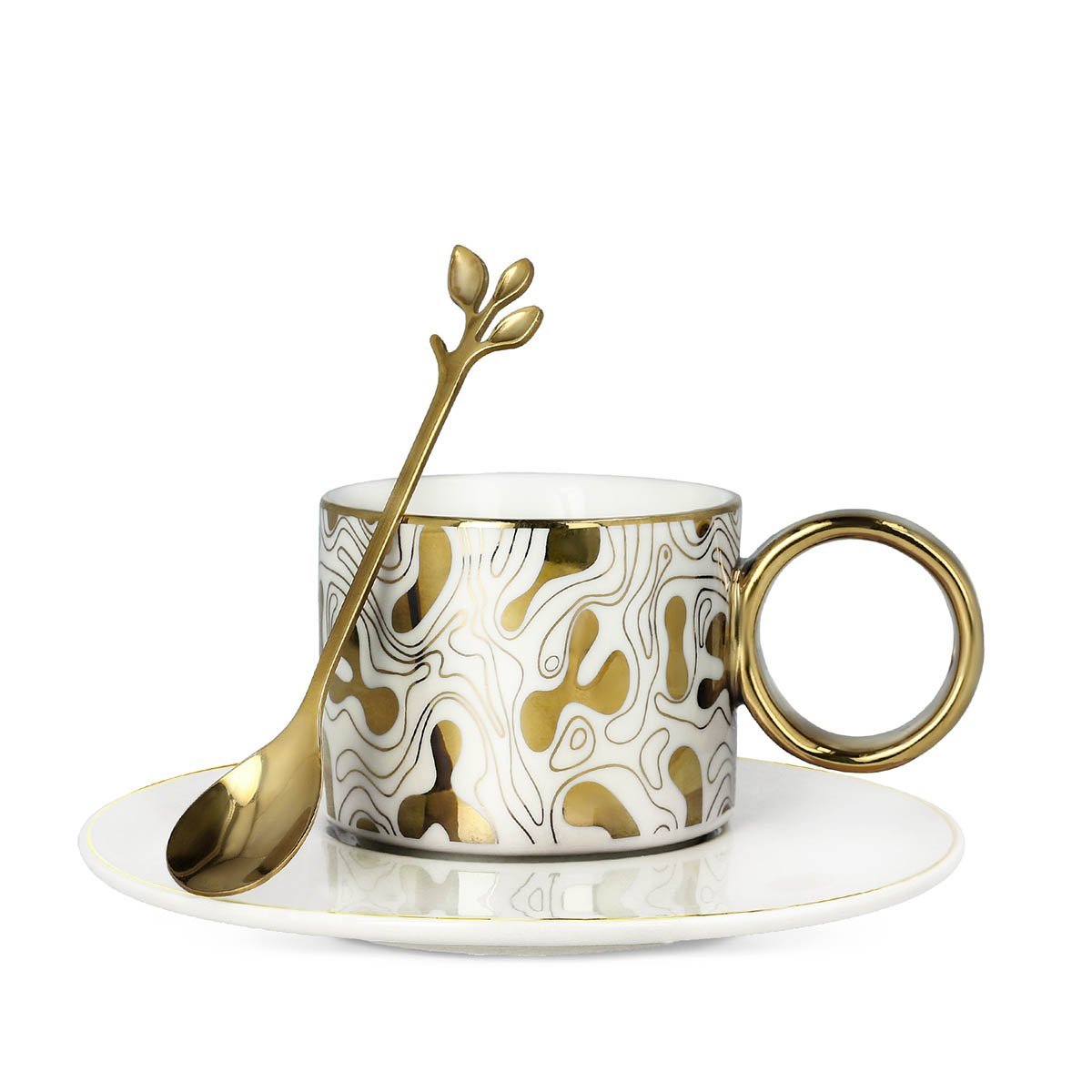 Šálek | NILA | bílo-zlatý s podšálkem a lžičkou | 0,15 l | AW21 810577