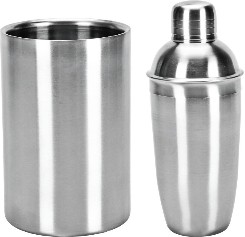 BAR SET 2PCS, STAINLESS STEEL (201), WINE COOLER AND COCTAIL SHAKER. TOTAL WEIGHT 750 GRAM, EACH SET IN COLOURBOX/ 130X130X190MM, Color box (CLB-C): 1 Cocktailshaker 500ml, Stainless steel, 90X90X220MM,1 Wine Cooler, Stainless steel, 120X120X180MM / CFT 1,49,(19.501/40ft HQ) przeczytaj całość