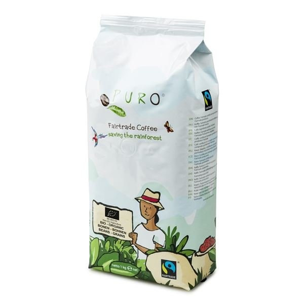 Kawa ziarnista Fairtrade Puro Bio: 100% Arabica Kraj pochodzenia: Honduras, Peru Profil smaku: pełnia 4/5, stopień palenia 5/5, aromat 4/5, kwasowość 3/5 Wyjątkowo pyszna mieszanka kaw charakteryzuje się wyrazistym aromatem Połączenie przepięknie delikatnego smaku czekolady z cytrusowymi nutami nadaje jej owocową świeżość i wzbogaca o naturalnie słodki smak *Waga: 1 kg