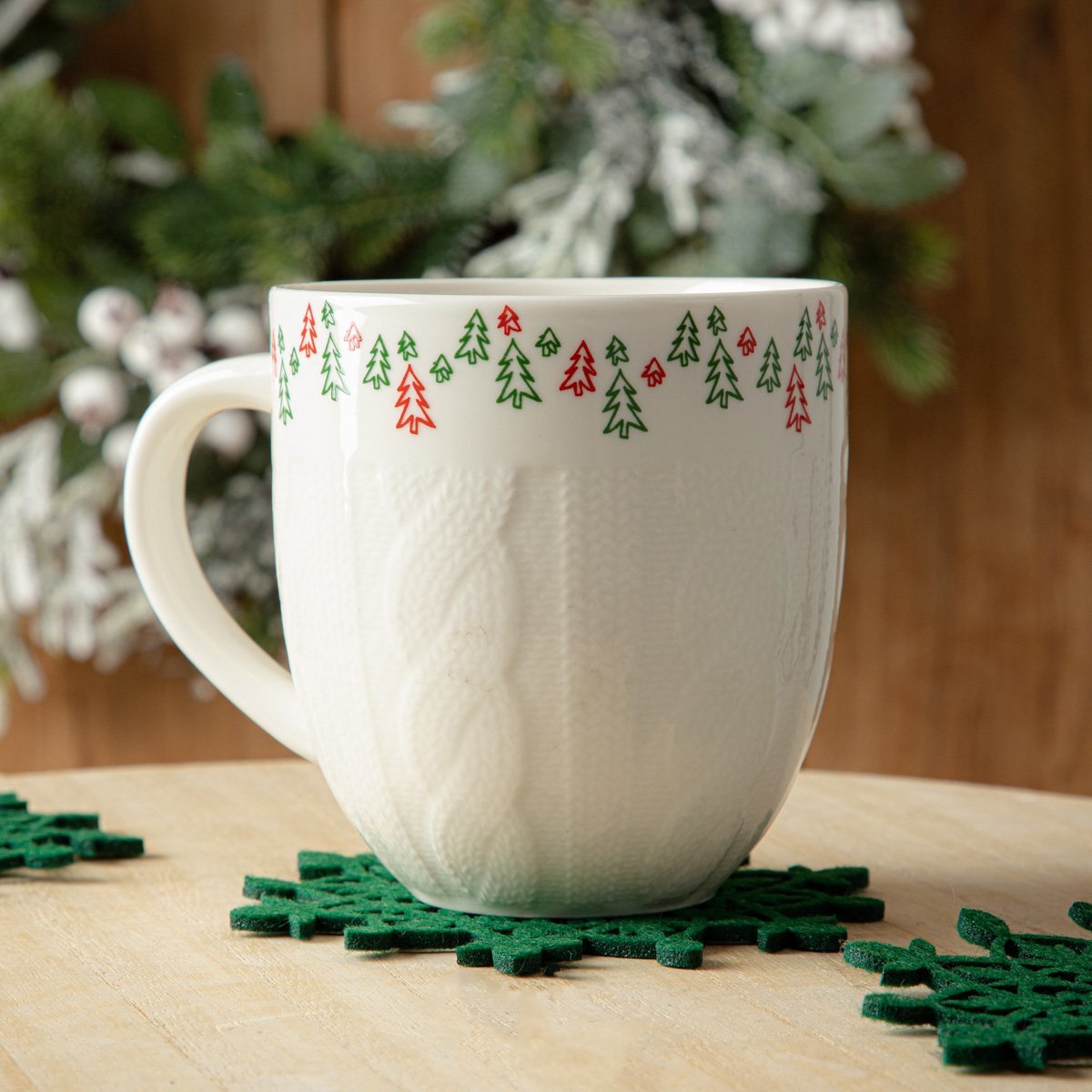 Vánoční hrnek | LAINE | bílý s vánočními stromky | 0,6 l | 945773 Homla