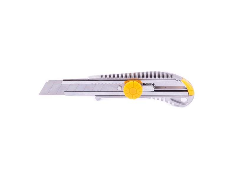 Nůž odlamovací Technické parametry:- 18mm s aretačním kolečem- Celokovový- Odolný nůž pro náročnou práci- Profi przeczytaj całość