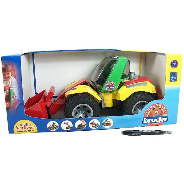 Roadmax kloubový kolový nakladač. Zadní ripper lze sklopit dolů. Autíčko má pohyblivou střední osu a měkké pneumatiky. Auto má gumová kola, proto nepoškrábe nábytek ani podlahu. Kabina se dá shora otevřít a za volant pak lze posadit svého oblíbeného řidiče (Lego nebo Cheva). przeczytaj całość