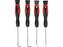Montážní háčky, sada 4ksIdeální na montáž a demontáž malých těsnících O-kroužků, pružin, podložek, na manipulaci s vodiči elektroinstalace automobilů, na čištění drážek, na čištění mřížek chladičů apod. Háčky mají tvrzené a chromované hroty. Rukojeť je vyrobena z kvalitního protiskluzového...