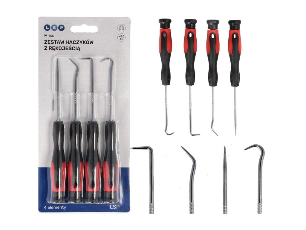 Ideální na montáž a demontáž malých těsnících O-kroužků, pružin, podložek, na manipulaci s vodiči elektroinstalace automobilů, na čištění drážek, na čištění mřížek chladičů apod. Háčky mají tvrzené a chromované hroty. Rukojeť je vyrobena z kvalitního protiskluzového materiálu. Celá sada je vyrobena z vysoce kvalitních materiálů.