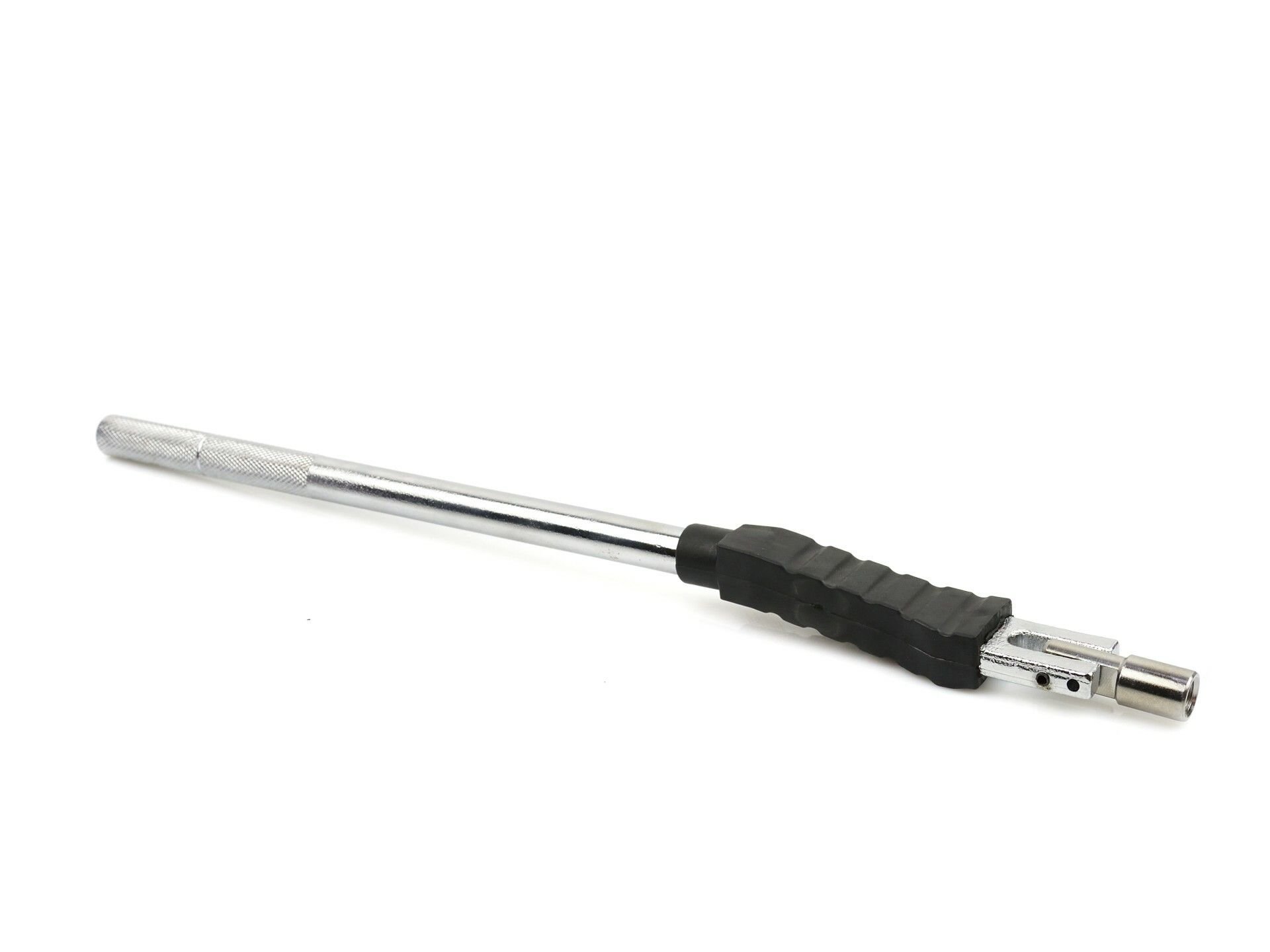 Klíč umožňuje ventil snadno protáhnout otvorem v ocelovém nebo hliníkovém ráfku bez použití větší síly. Má gumový kryt, který zabraňuje poškrábání ráfku při protažení ventilku. Pomocník do dílen i pneuservisů.