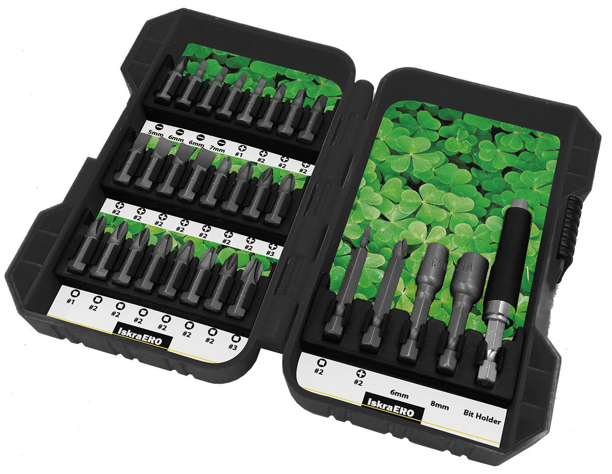 ISKRA, ERO 29-dílná sada šroubovacích bitů FST029Sada šroubovací bitů Iskra ERO FST 029 v praktické krabičce je praktická a univerzální v každé domácí dílně. Sada obsahuje magnetický držák a několik různých nástavců, které umožňují široké použití.TECHNICKÉ PARAMETRYNástavce šroubováku 25 mm: (24...