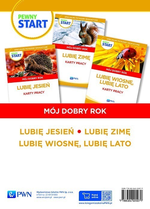Mój dobry rok. Lubię jesień, Lubię zimę, Lubię wiosnę, lubię lato” to różnorodne materiały dla uczniów ze specjalnymi potrzebami edukacyjnymi, szczególnie z niepełnosprawnością intelektualną w stopniu lekkim.Materiały oparte są na kalendarzu rocznym i nawiązują do pór roku, usprawniają wszystkie...