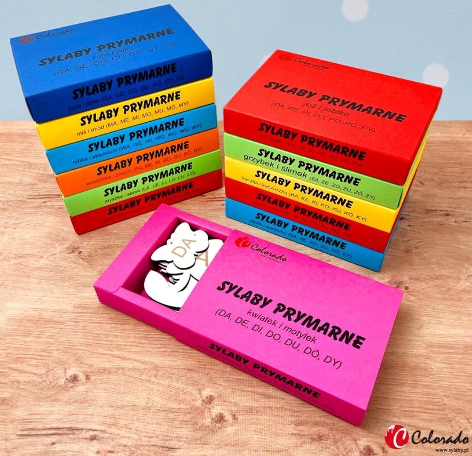 Zestawy sylabowe pozwalają na naukę sylab oraz samogłosek w przyjazny i przejrzysty dla dziecka sposób.