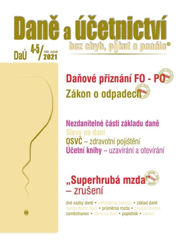 DaÚ č. 4-5/2021, Daňové přiznání PO, Zákon o odpadech, Superhrubá mzda - zrušení od 1. 1. 2021 (czeski)