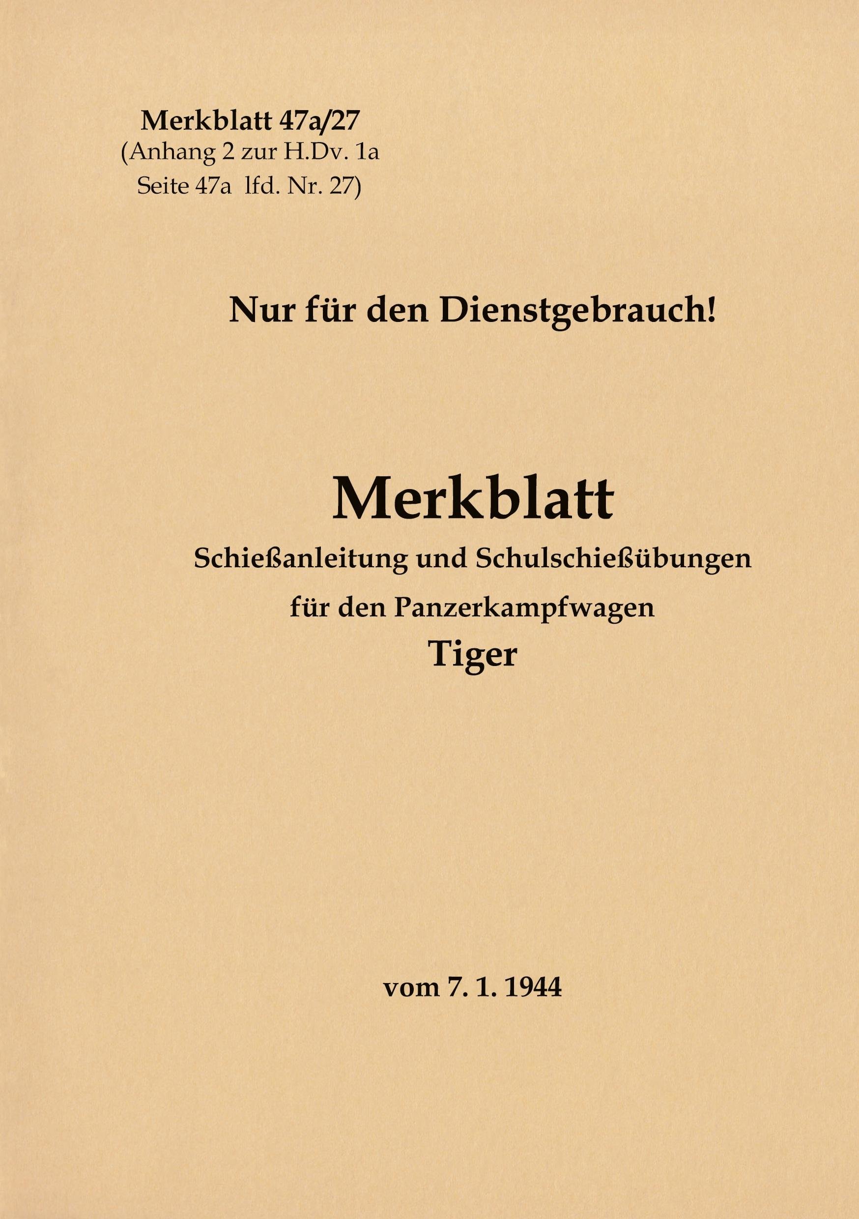 Merkblatt 47a/27 Schießanleitung und Schulschießübungen für den Panzerkampfwagen Tiger (niemiecki)