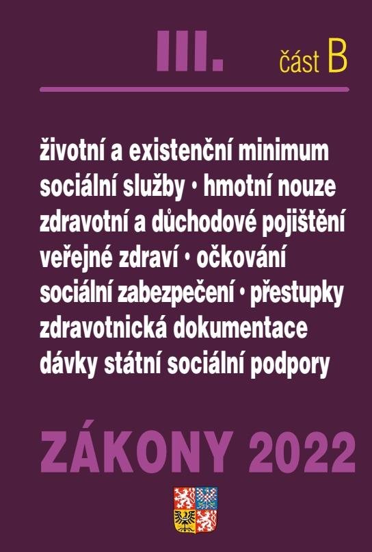 Zákony 2022 III/B Zdravotní pojištění, Důchodové pojištění, Sociální služby -Nnemocenské pojištění, sociální zabezpečení, životní minimum, zdravotnická dokumentace (czeski)