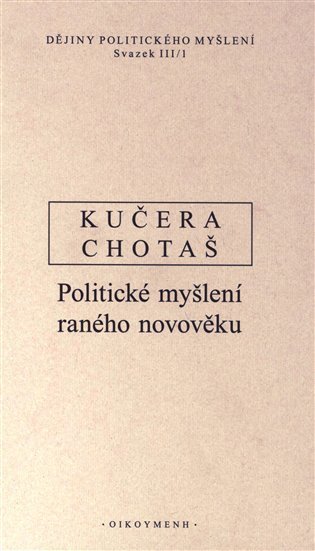 W pierwszej części trzeciego tomu dziejów myśli politycznej przedstawiono filozoficzno-historyczną wykładnię myśli politycznej od humanizmu i renesansu po nurty oświecenia francuskiego (Machiavelli, Erazm z Rotterdamu, Bodin, Suárez, Grocjusz, Hobbes, Harrington, Locke, Monteskiusz, Rousseau). Duża uwaga poświęcona jest powstaniu teorii państwa narodowego, czeskiej reformacji, prawu do oporu, tolerancji religijnej, prawu naturalnemu i międzynarodowemu oraz teorii podziału władzy politycznej. Integralną część prezentowanego dzieła stanowi także wykład rozwoju myśli politycznej w krajach czeskich. Ten wykład zaczyna się analizą poglądów politycznych dwóch znaczących przedstawicieli czeskiej reformacji, Jana Jesenskiego i Jana Amosa Komeńskiego, kontynuuje opisem panslawizmu oraz obszernym przedstawieniem rozwoju myśli politycznej w krajach czeskich w XIX wieku.