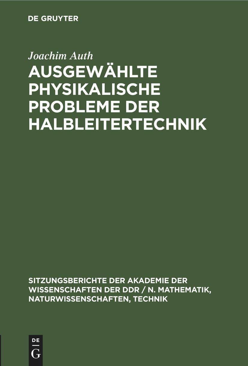 Ausgewählte physikalische Probleme der Halbleitertechnik (niemiecki)