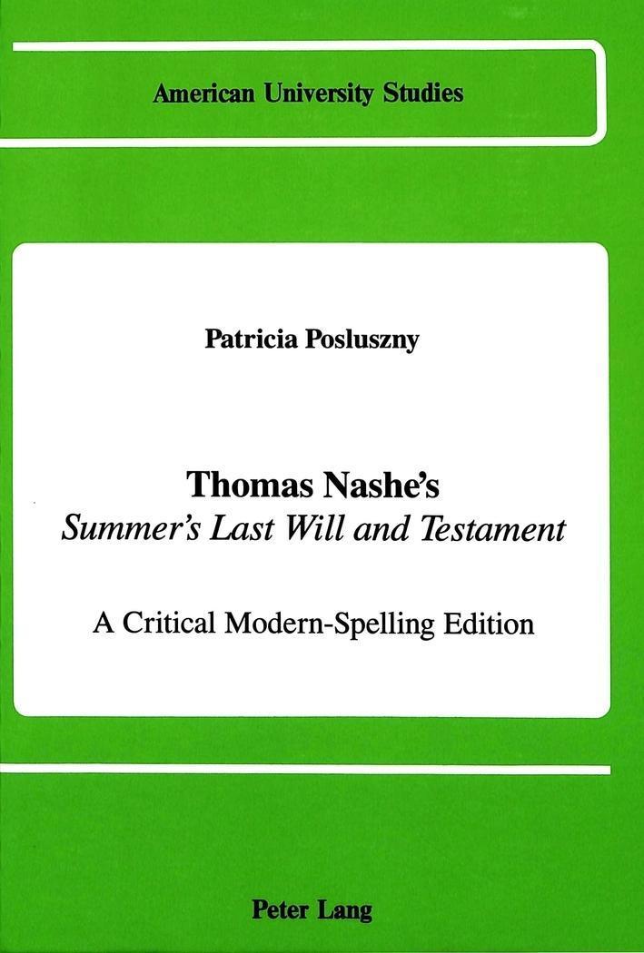 Thomas Nashe's Summer's Last Will and Testament (angielski)