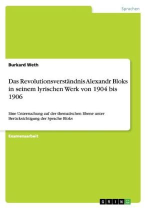 Examensarbeit aus dem Jahr 1979 im Fachbereich Literaturwissenschaft - Slawische Länder, Ludwig-Maximilians-Universität München, Sprache: Deutsch, Abstract: Ziel dieser Arbeit ist es, das Revolutionsverständnis Aleksandr A. Bloks in seinem lyrischen Werk von 1904 bis 1906 zu beschreiben und...