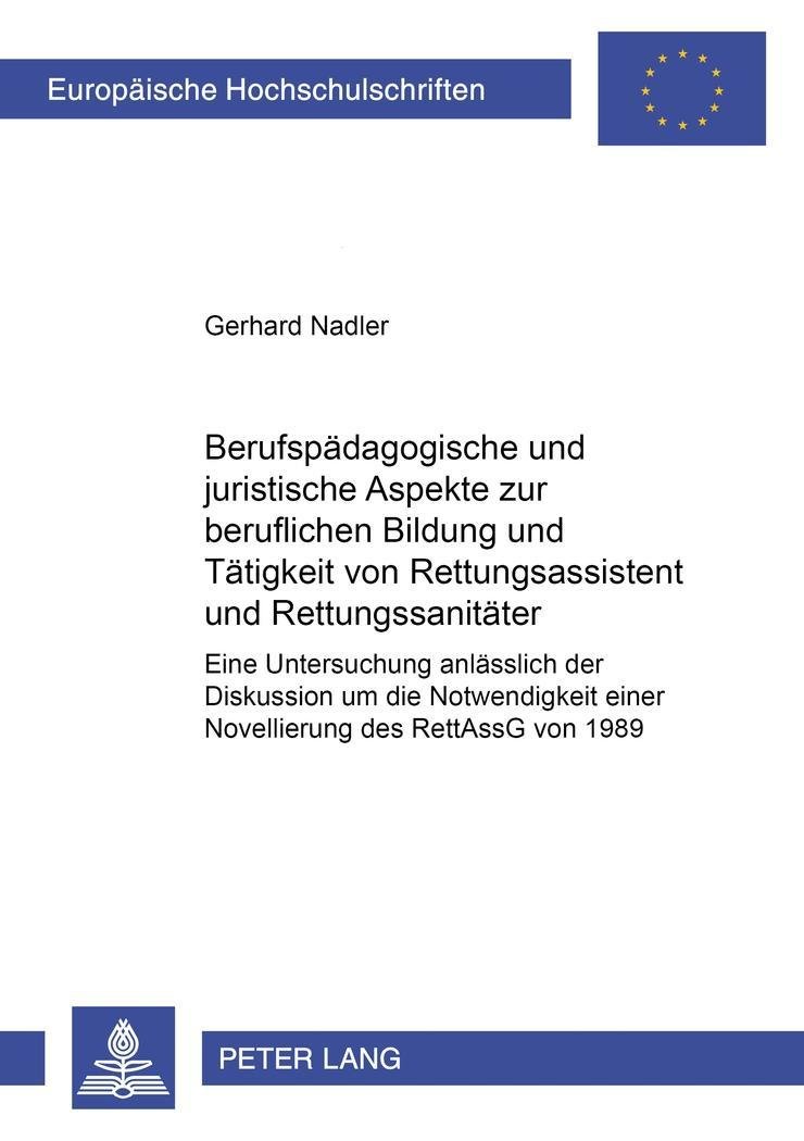 Berufspädagogische und juristische Aspekte zur beruflichen Bildung und Tätigkeit von Rettungsassistent und Rettungssanitäter (niemiecki)