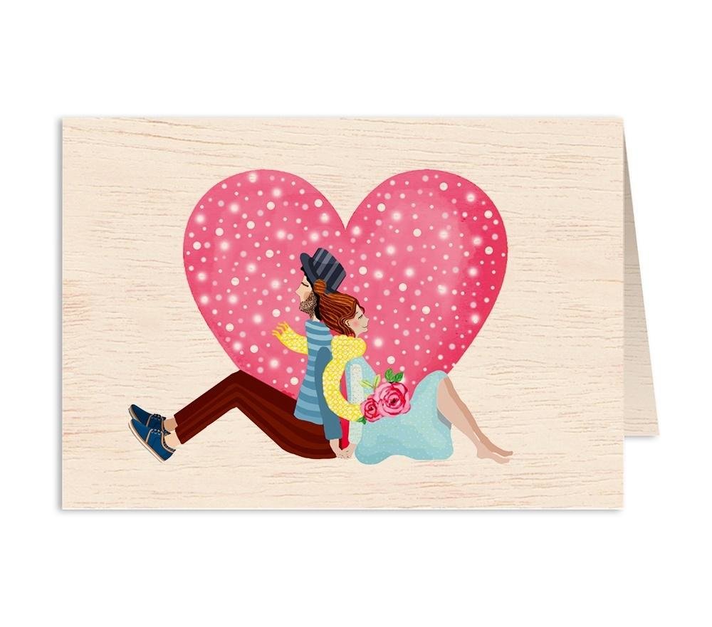 Karnet drewniany C6 + koperta Ślub Para Młoda serc