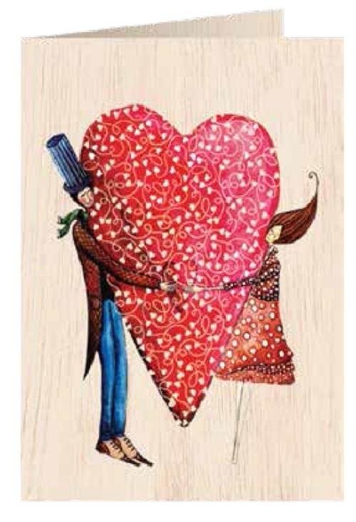 Karnet drewniany C6 + koperta Ślub duże serce