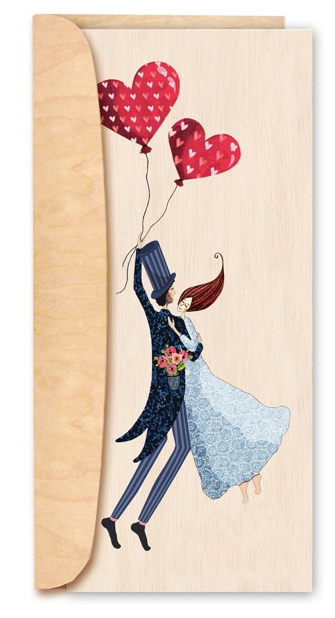 Karnet drewniany DL z drewnianą kopertą Ślub balon