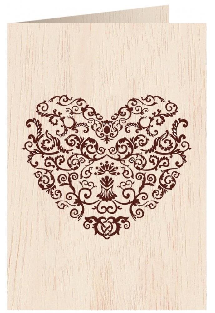 Karnet drewniany C6 + koperta Serce wzory Ślub