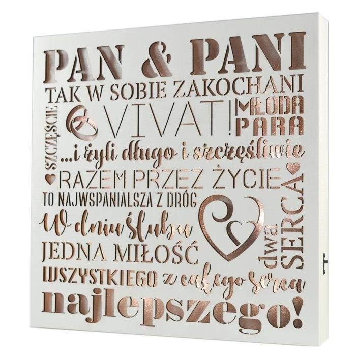 Pamiątki Deco light, dekoracyjna pamiątka podświetlana Pan & Pani DCL 002 Dekoracyjna tabliczka podświetlana to wspaniały, wspaniały, niezapomniany pomysł na prezent ślubny. Tabliczka z podświetlanymi życzeniami posiada z tyłu dwie dziurki, dzięki którym można powiesić ja na ścianie. Baterie nie...